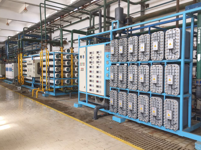 特點:在設備設計上,采用成熟、可靠、先進、自動化程度高的兩級RO+EDI+精混床除鹽水處理工藝,全膜法處理工藝:UF+二級RO+EDI+拋光混床。確保處理后出水電阻率達到18.2MΩ.CM。保證產品質量的需求!