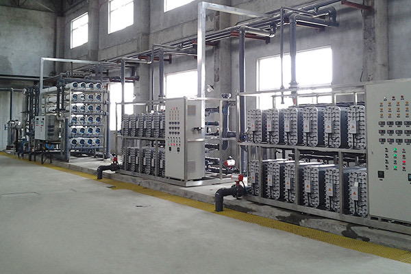 特點:采用世界上最先進的進口反滲透膜元件,壓力容器等設備,配以合理而又有前處理和后處理設備,能生產出符合電力行業中,高壓鍋爐補給水標準的水。控制系統采用工控機程控控制,可實現自動起停,加藥及沖洗,自動監測各種運行參數,以便生產管理。系統終端產水電阻率達到18.2MΩ.CM